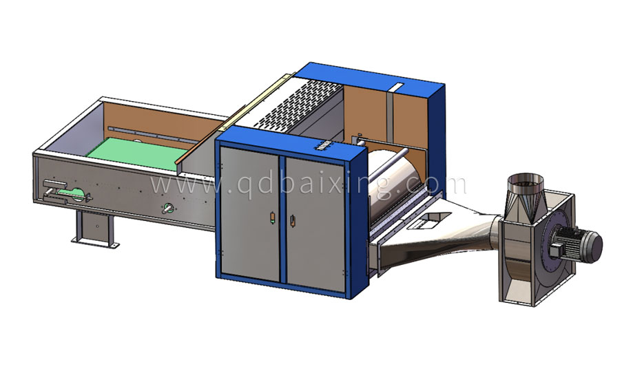 喂棉箱是干法成網(wǎng)無紡布生產(chǎn)線中的關(guān)鍵單元機之一,其主要作用是將充分開松混合后的纖維處理成均勻的筳棉,送入下道成網(wǎng)設(shè)備(梳理機或氣流成網(wǎng)機)